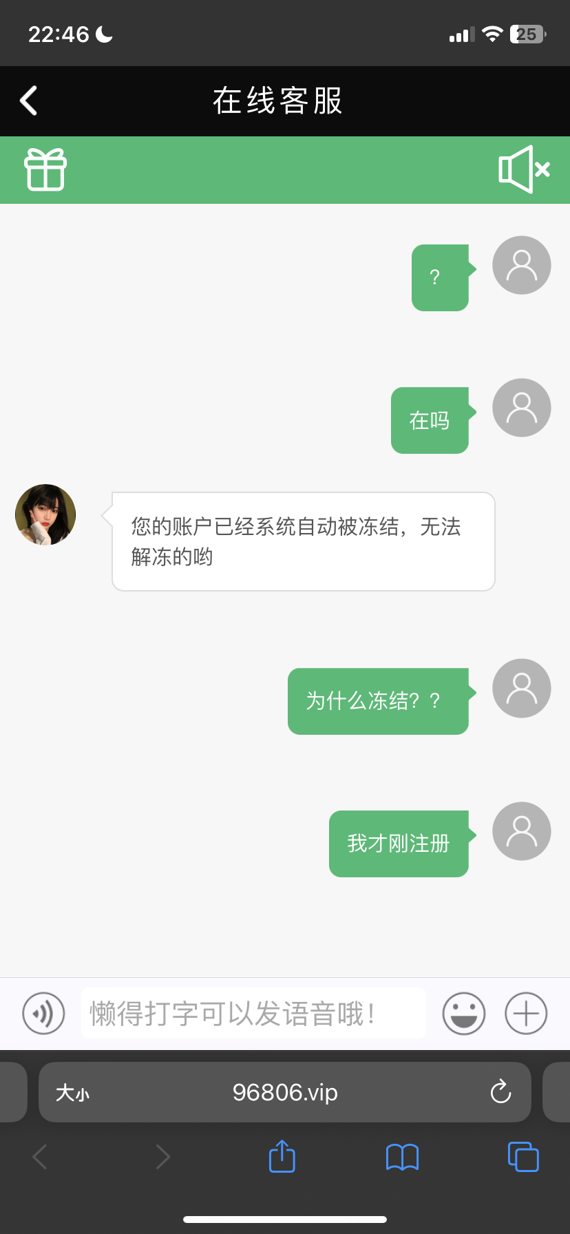注册不到10秒钟账号就已经冻结了,我都不知道发生什么事了