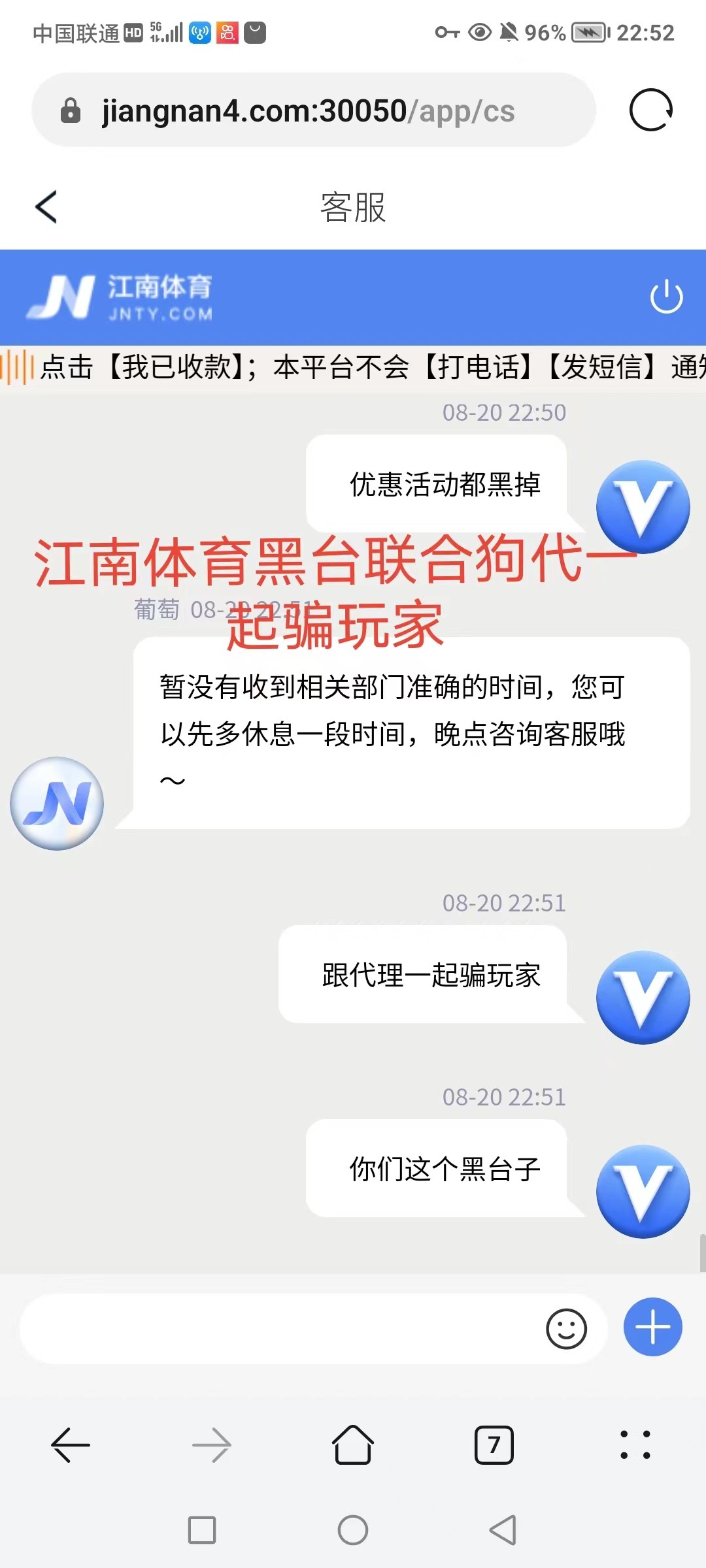 骗充值的黑台子,江南体育狗带也是骗子,骗完充值就拉黑联系方式