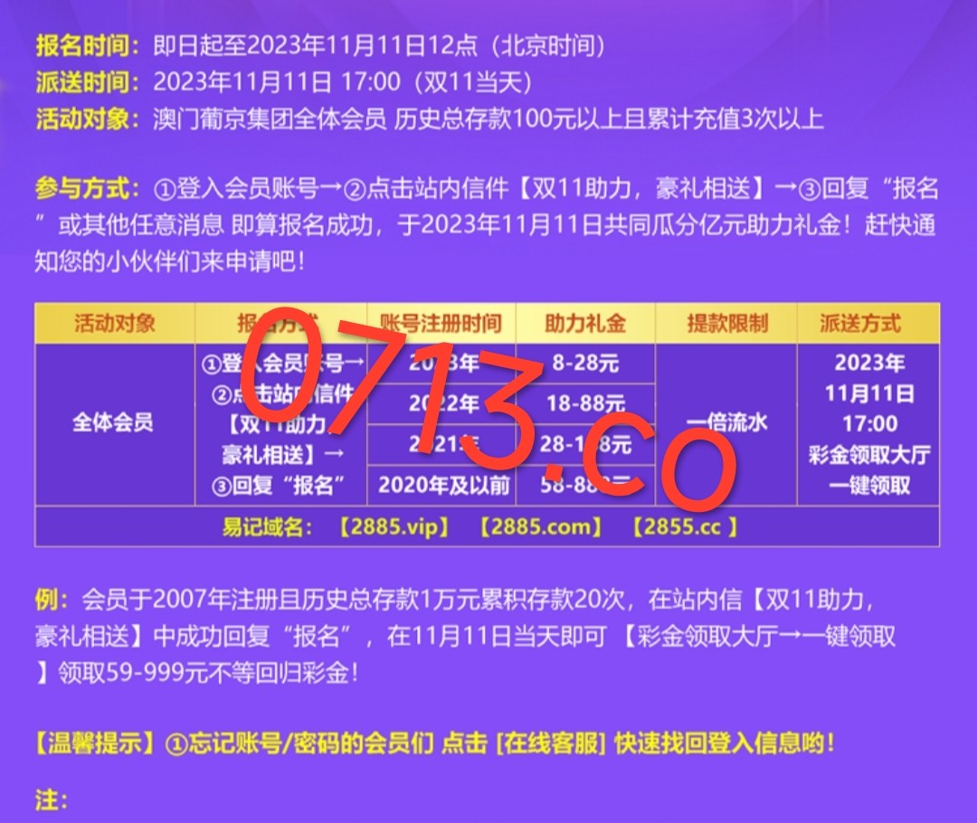 新老用户注册登陆 点击个人信息-站内信里面找到活动信件 回复指定文字即可赠送8+彩金 澳门葡京是11.11号送 游戏和提款限制自行查看优惠
