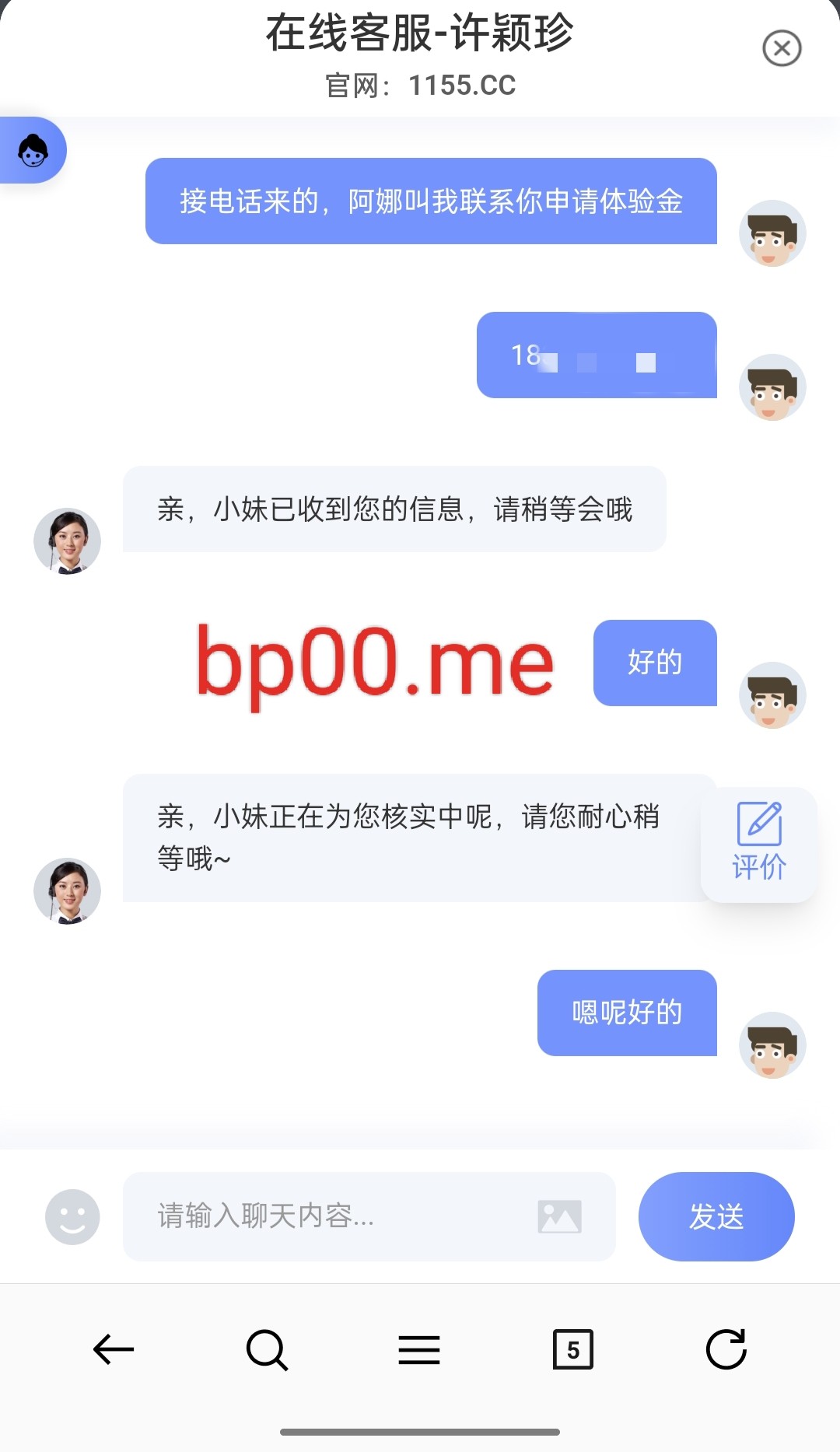 碰瓷电话特邀!注册好了绑定银行卡手机号,联系在线客服,说是阿娜叫我来申请体验金,具体咨询客服