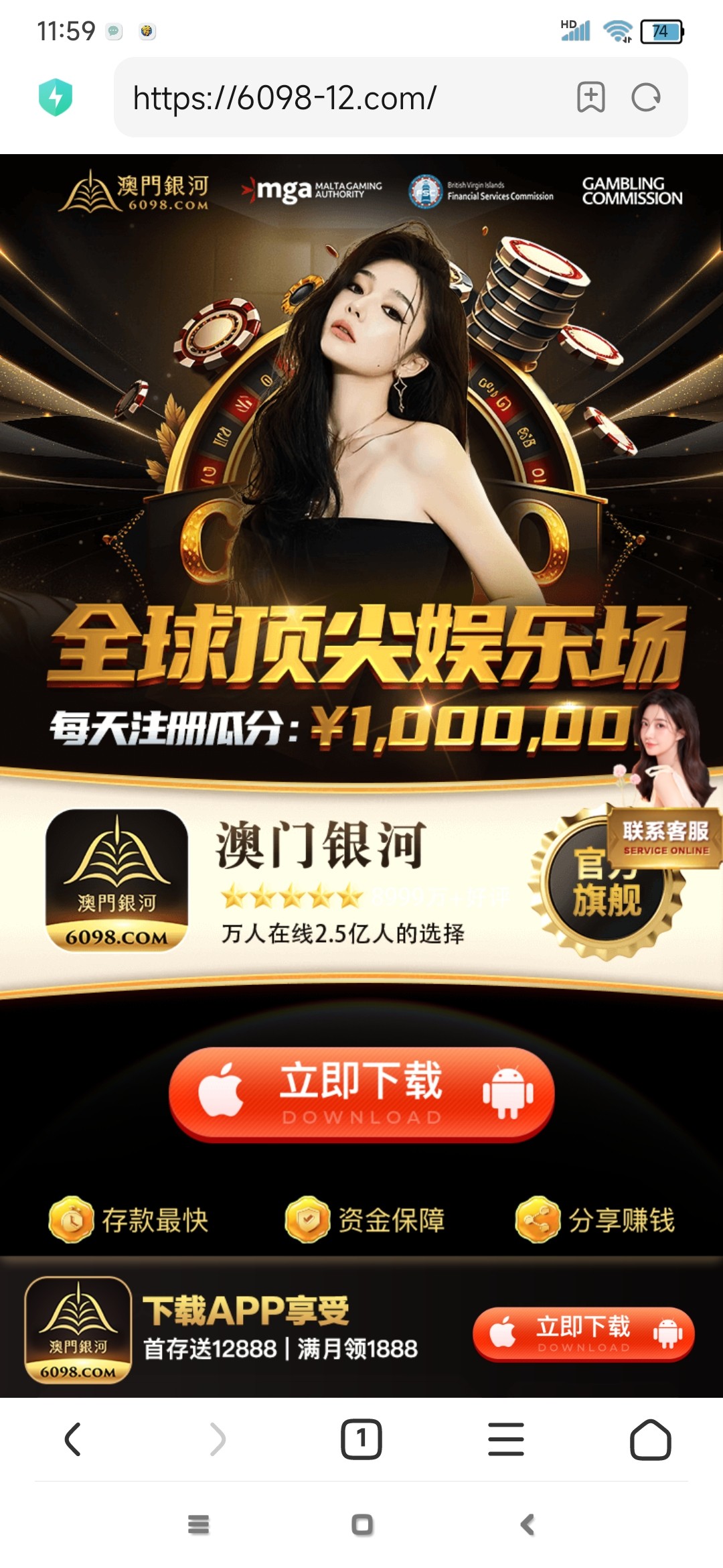 千万别去注册。每天都打电话来联系客服领彩金。一问客服让充值。 我都开骂了,每天还是要打过来。草。