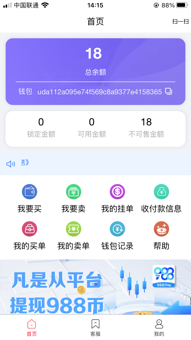 988钱包只能找狗庄台充值,不能变现