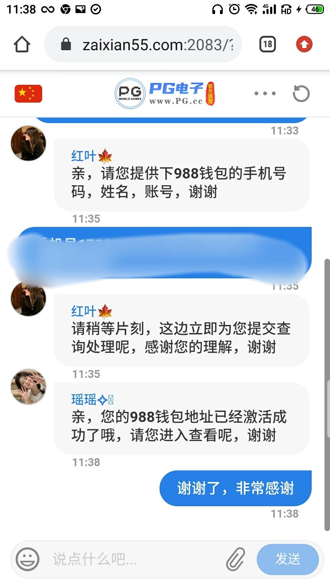 谢谢你哈哈哈哈我先在z7哪用988充值了118(这一百我在988冲的)然后 988又送了58 z7充值的提了100到账好慢不过 然后这个58就玩这个pg.cc了提了一百 目前还在审核中嘿嘿嘿