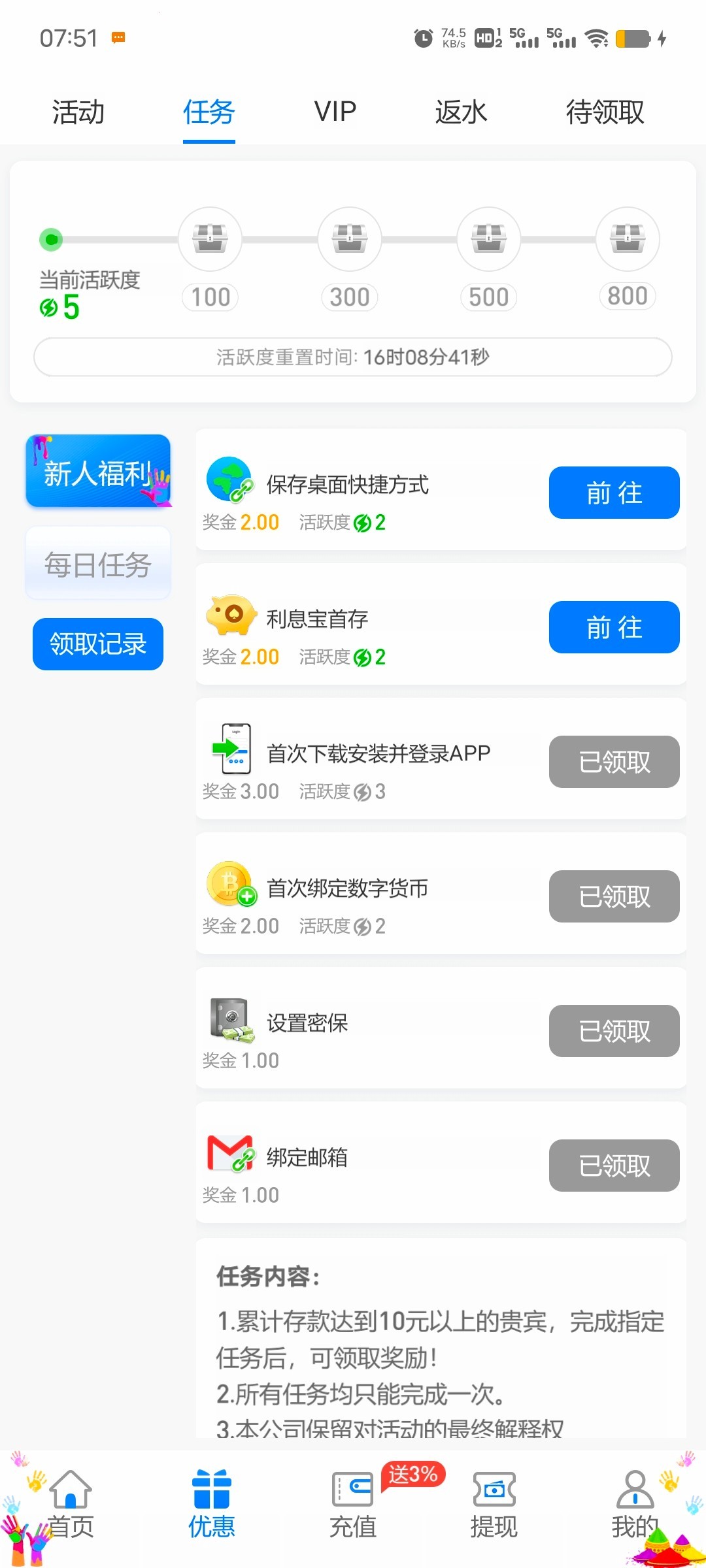 新人注册绑卡下载APP,新人礼包共计11元,出款自测