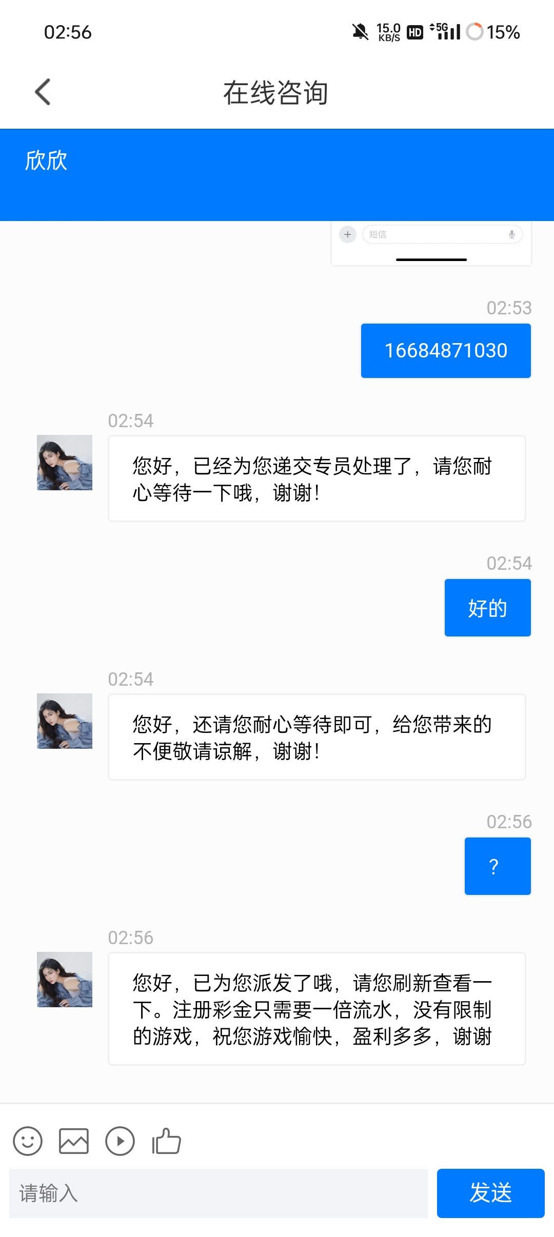 我来短信申请都没给