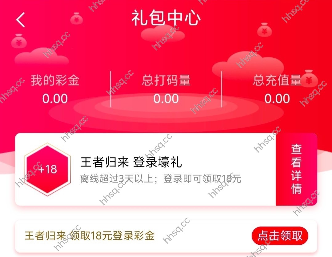 首页礼包中心三天未登录送18彩金!