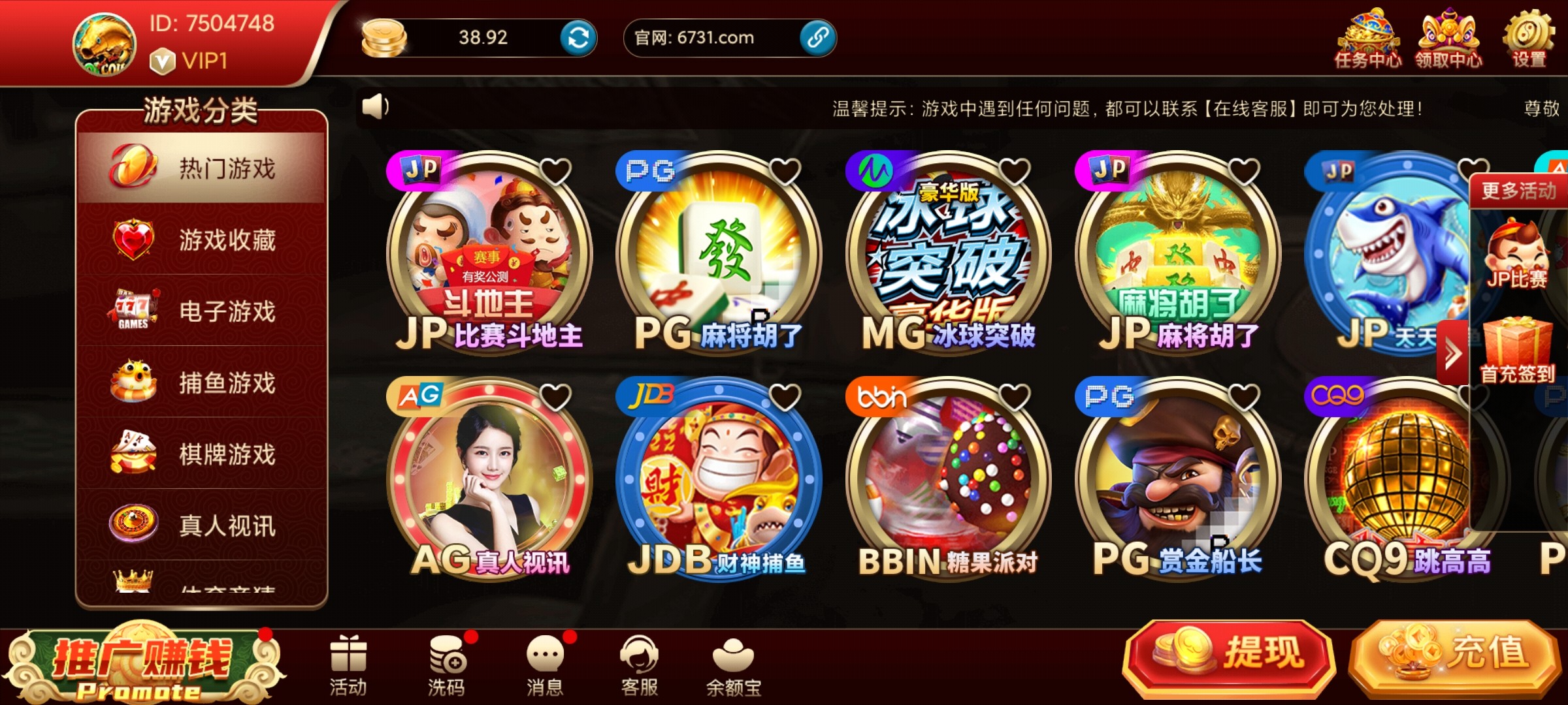 注册直接送38,还没提现不知道到不到账严禁充值