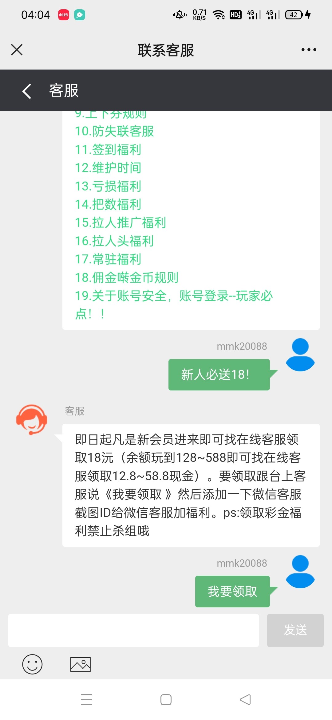 即日起凡是新会员进来即可找在线客服领取18沅(余额玩到128~588即可找在线客服领取12.8~58.8现金)。要领取跟台上客服说《我要领取 》然后添加一下微信客服截图ID给微信客服加福利。ps:领取彩金福利禁止杀组哦