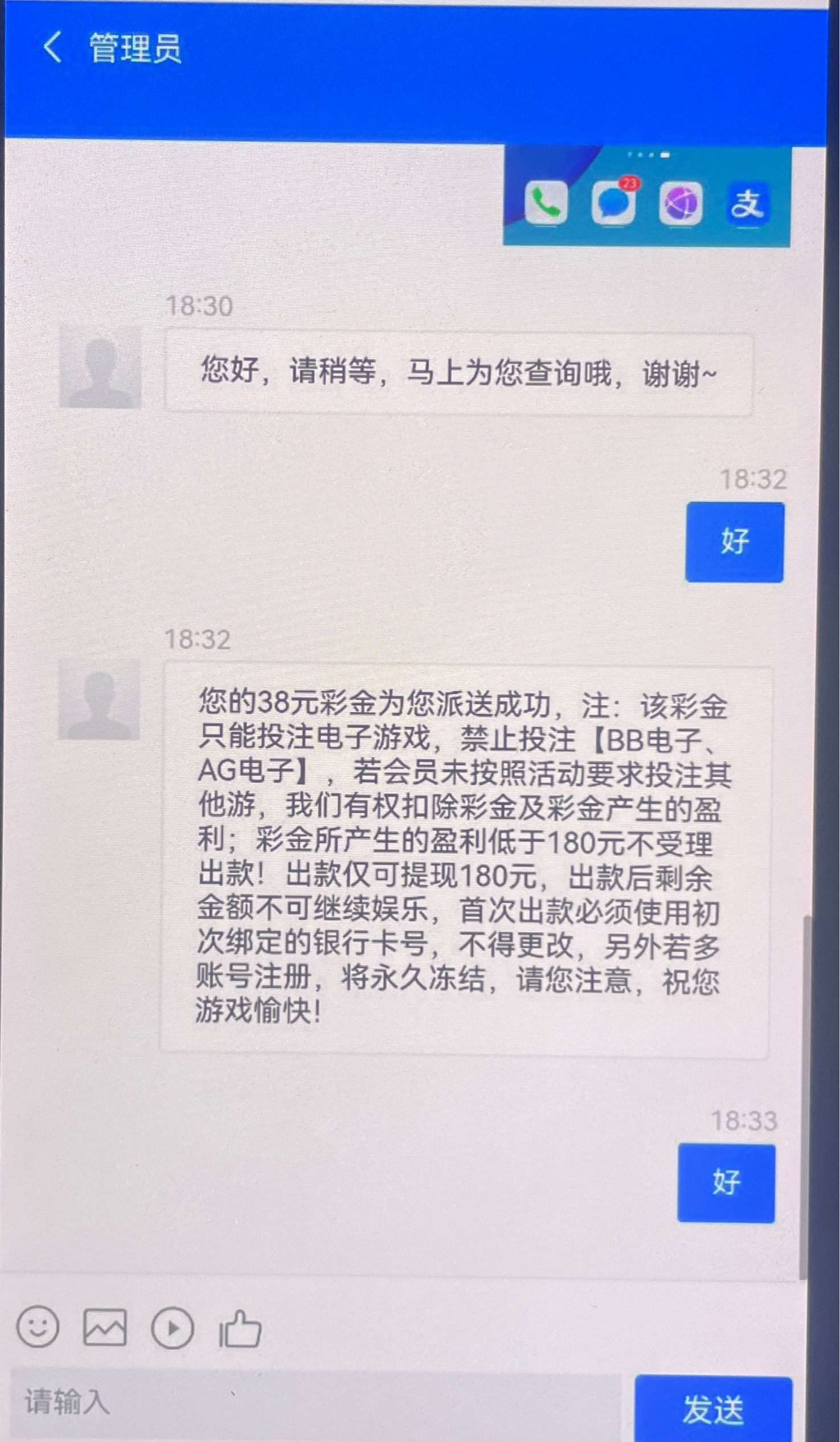 打到180不出款,黑台一个,38的彩金,要打380的电子流水,