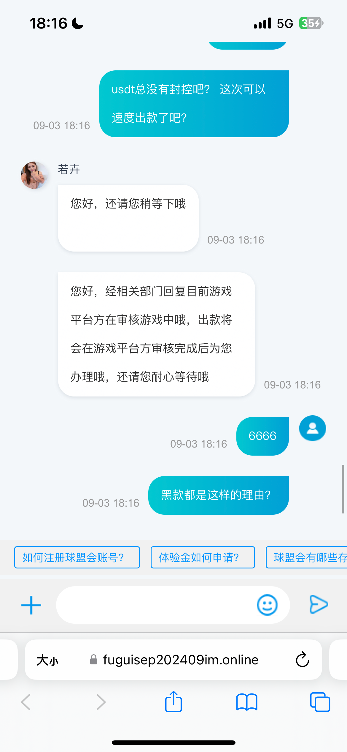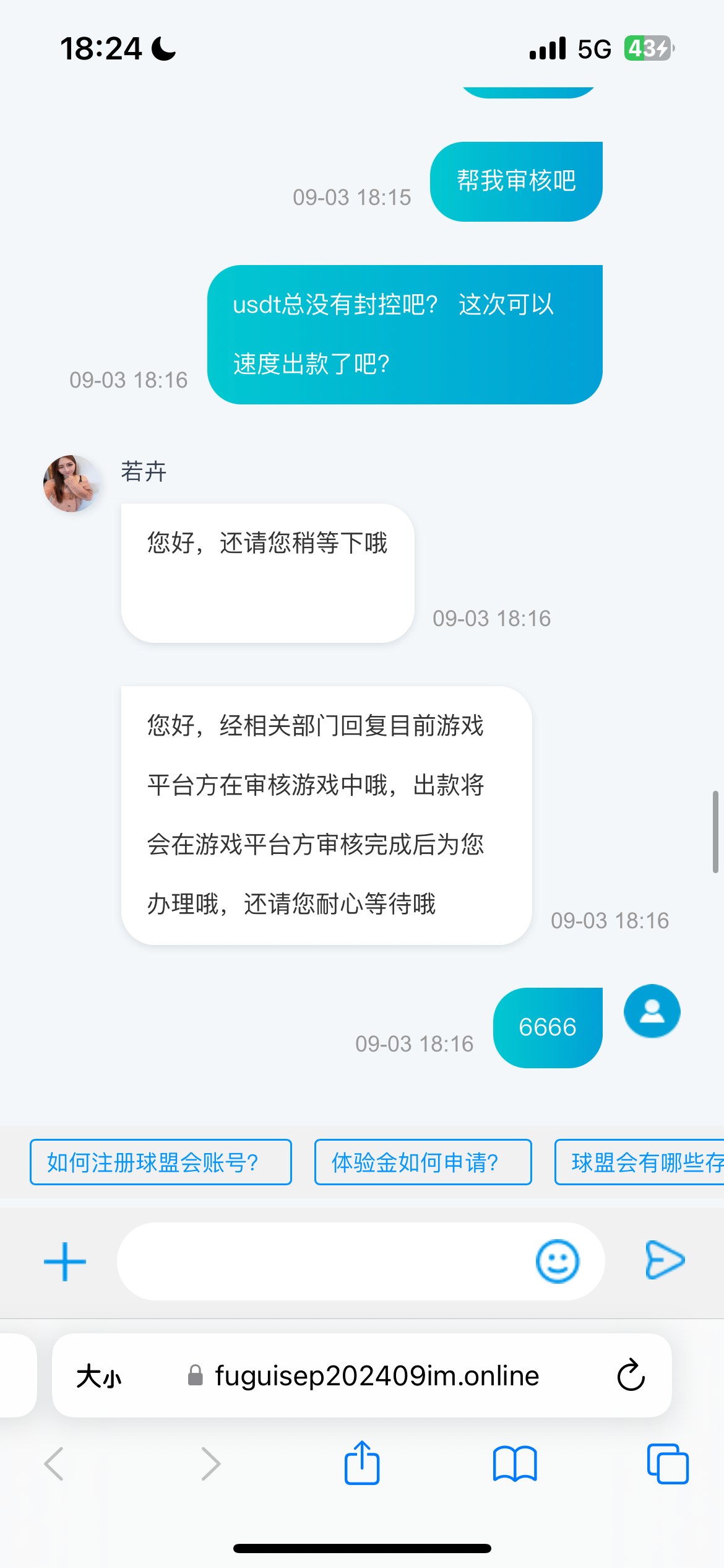充值1000提现1260 支付宝提现先说取款人多耐心等待后面变成支付宝封控 没办法退回来提u 客服直接变成游戏注单审核 黑款就一直找理由不给你出款nb 况且我还是充值玩 大家以后擦亮眼睛