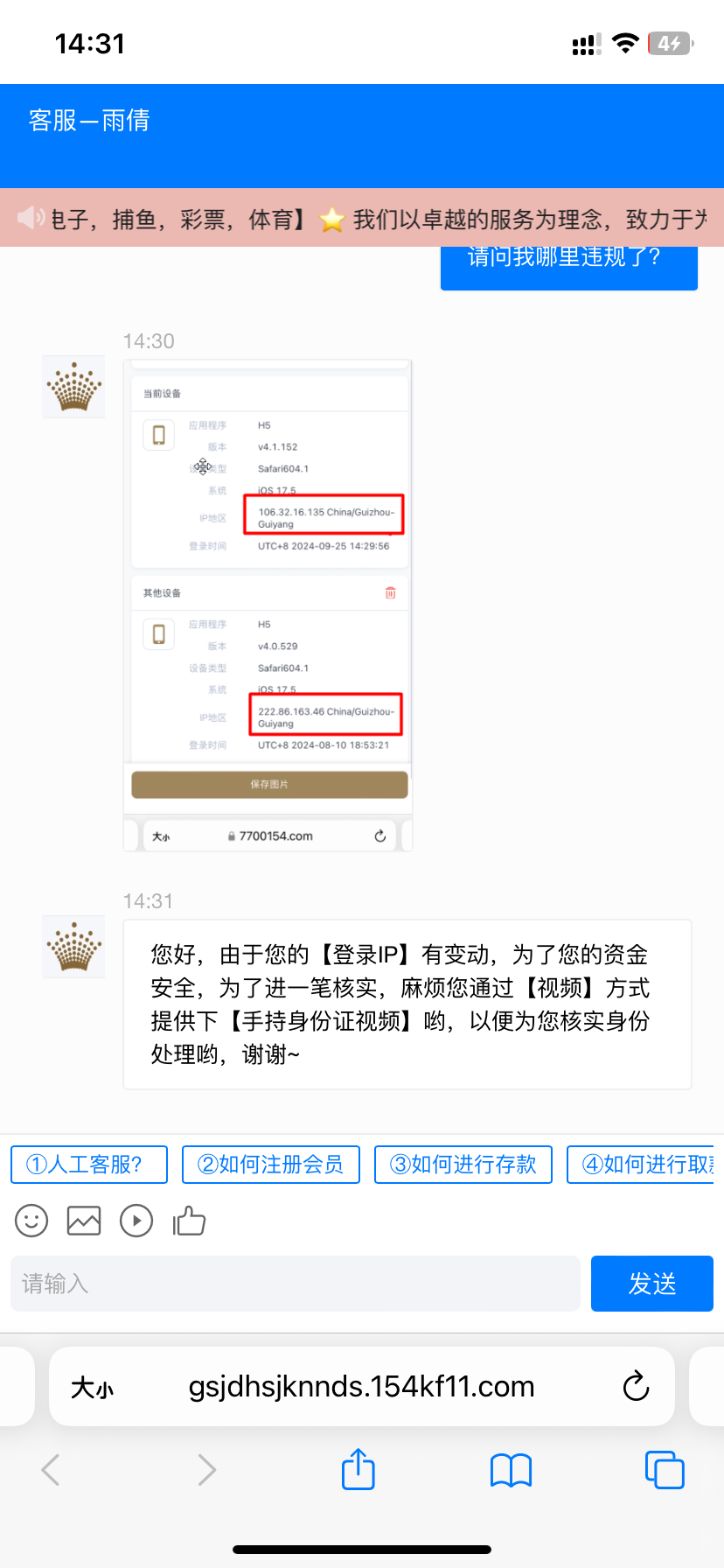 都玩了两三年的平台,现在也开始黑了,大家注意吧 存了140提520都黑。上传了证件和手持,又要视频。以前存50提2000都几分钟到的。无语。看来现在不能玩了,赢了300多块钱就开始这样了。