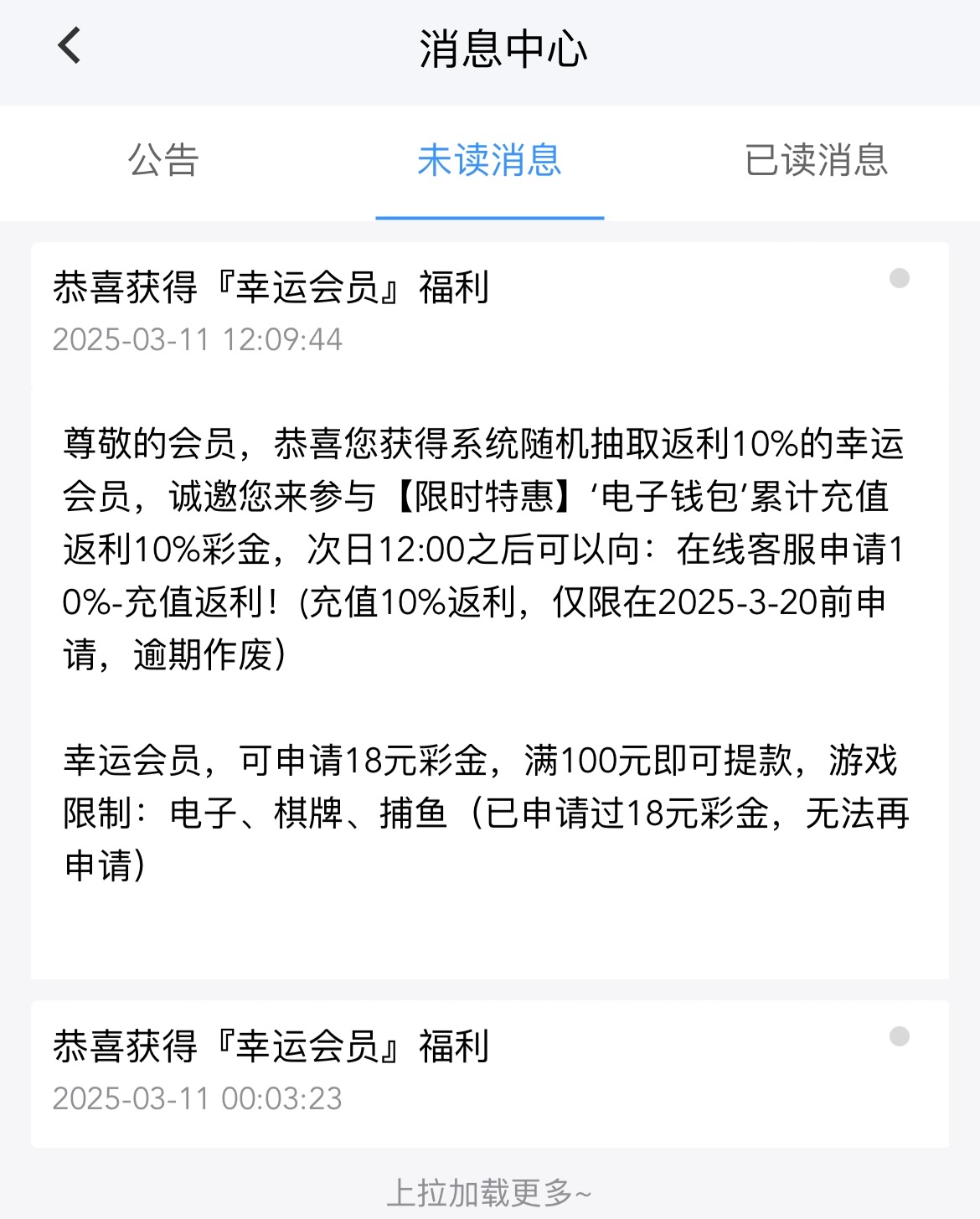 有号的老哥可以上号看看站内信有没有,有的话可以去联系客服申请18彩金,限电子棋牌捕鱼,满100提现