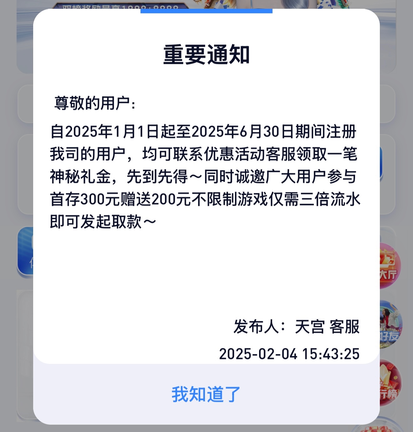 1月1日-6月30日期间注册的用户可以联系优惠活动客服申请领取,应该是只有充值过的才能领,可以去试试