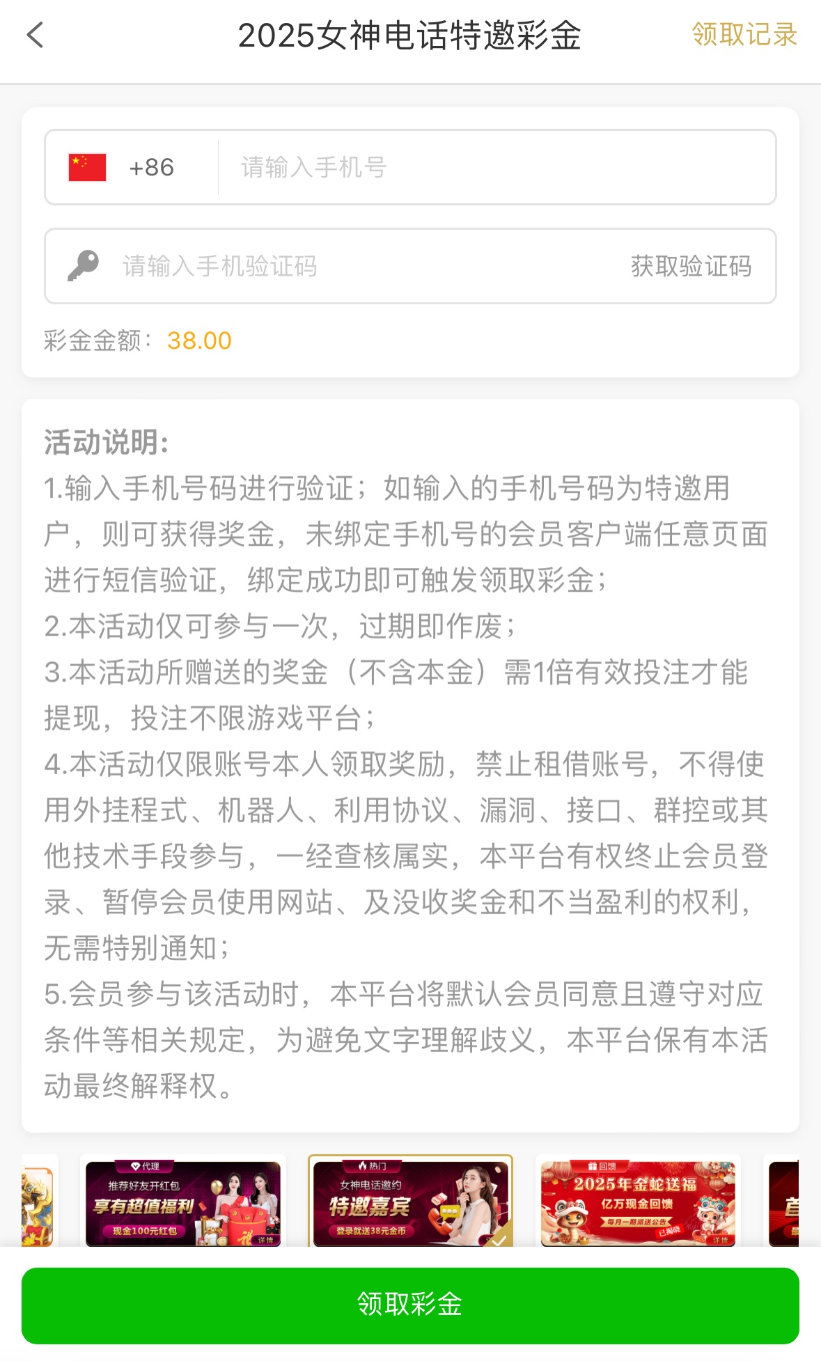 注册完善资料优惠里自助领取,一倍流水,不限制游戏
