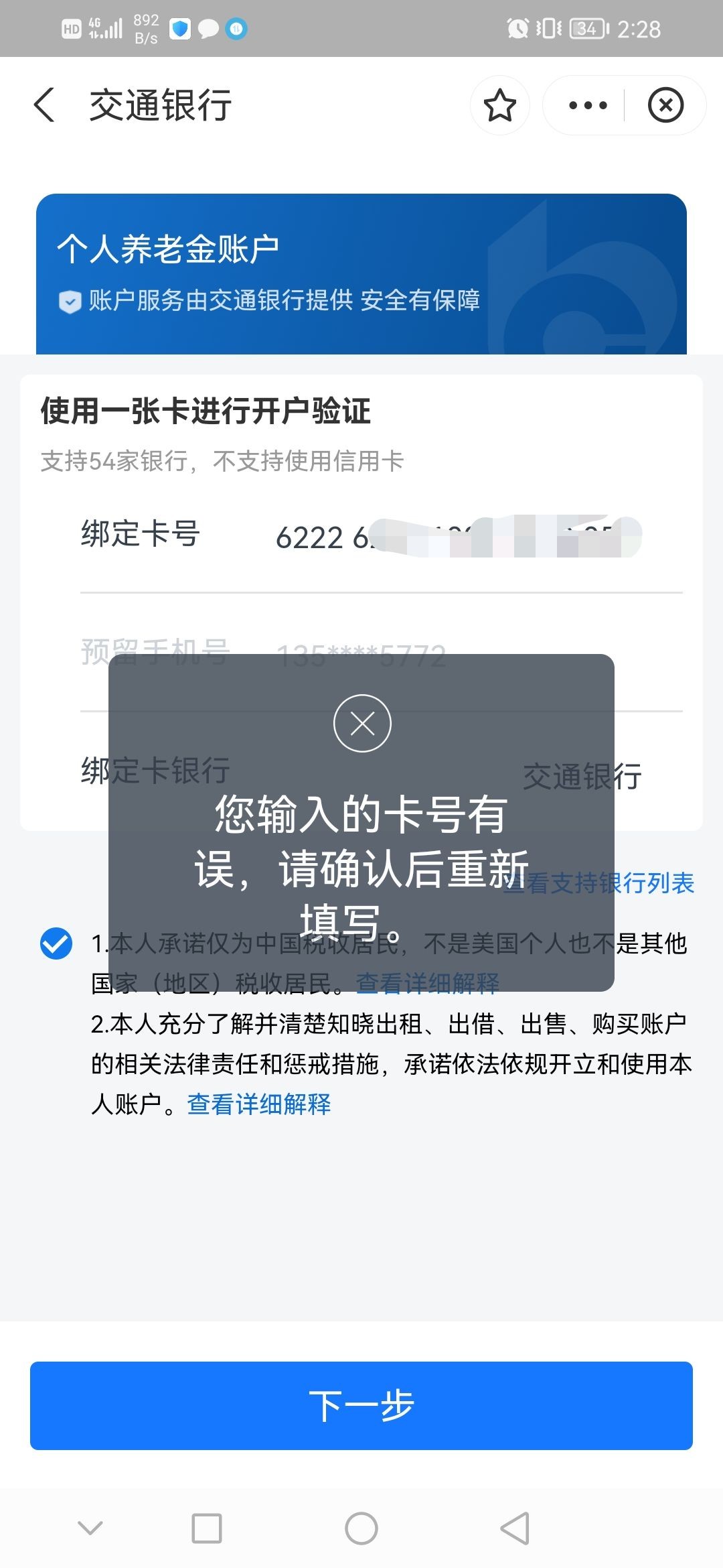 接码这一步提示我银行卡错误?怎么搞,都接到验证码了