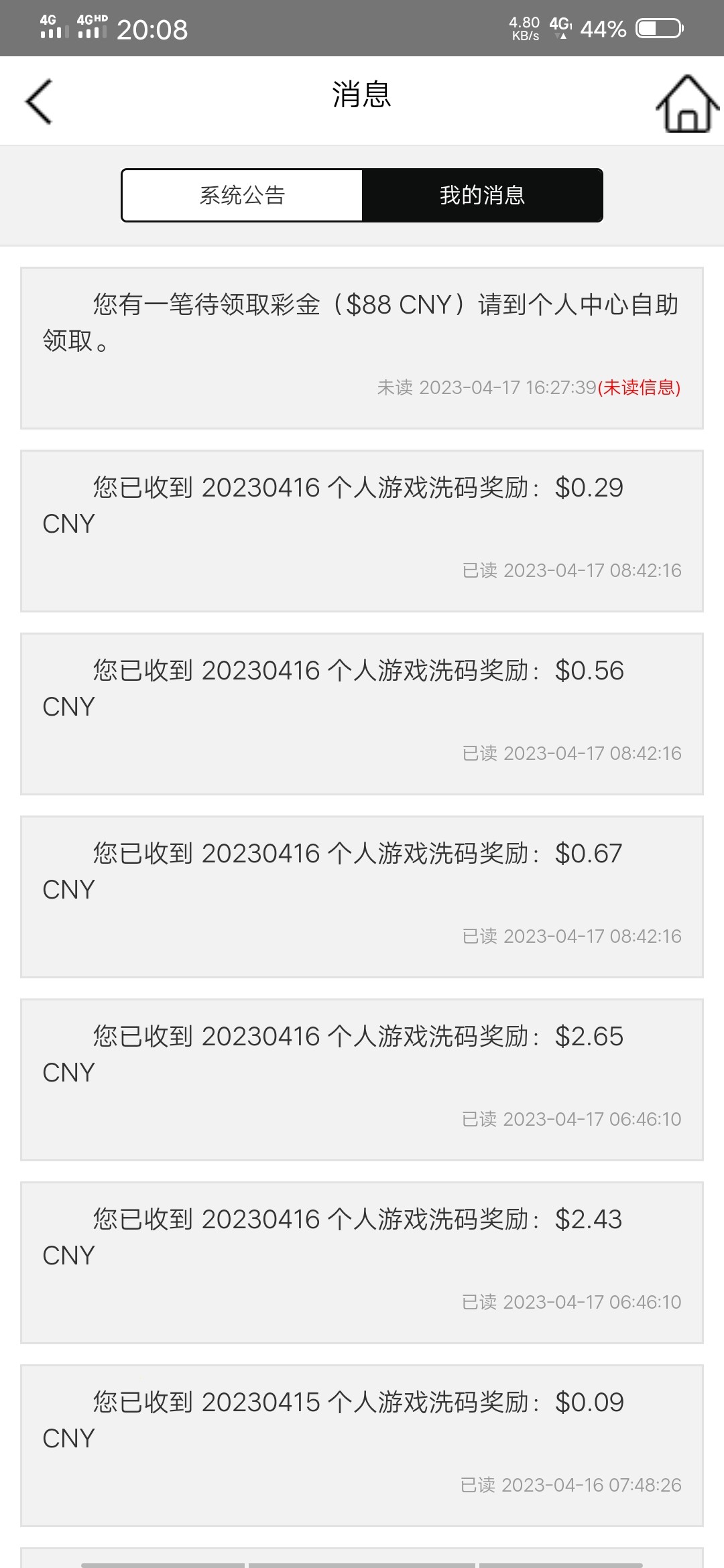 本月老会员彩金也派送了 上个月有充值的查看