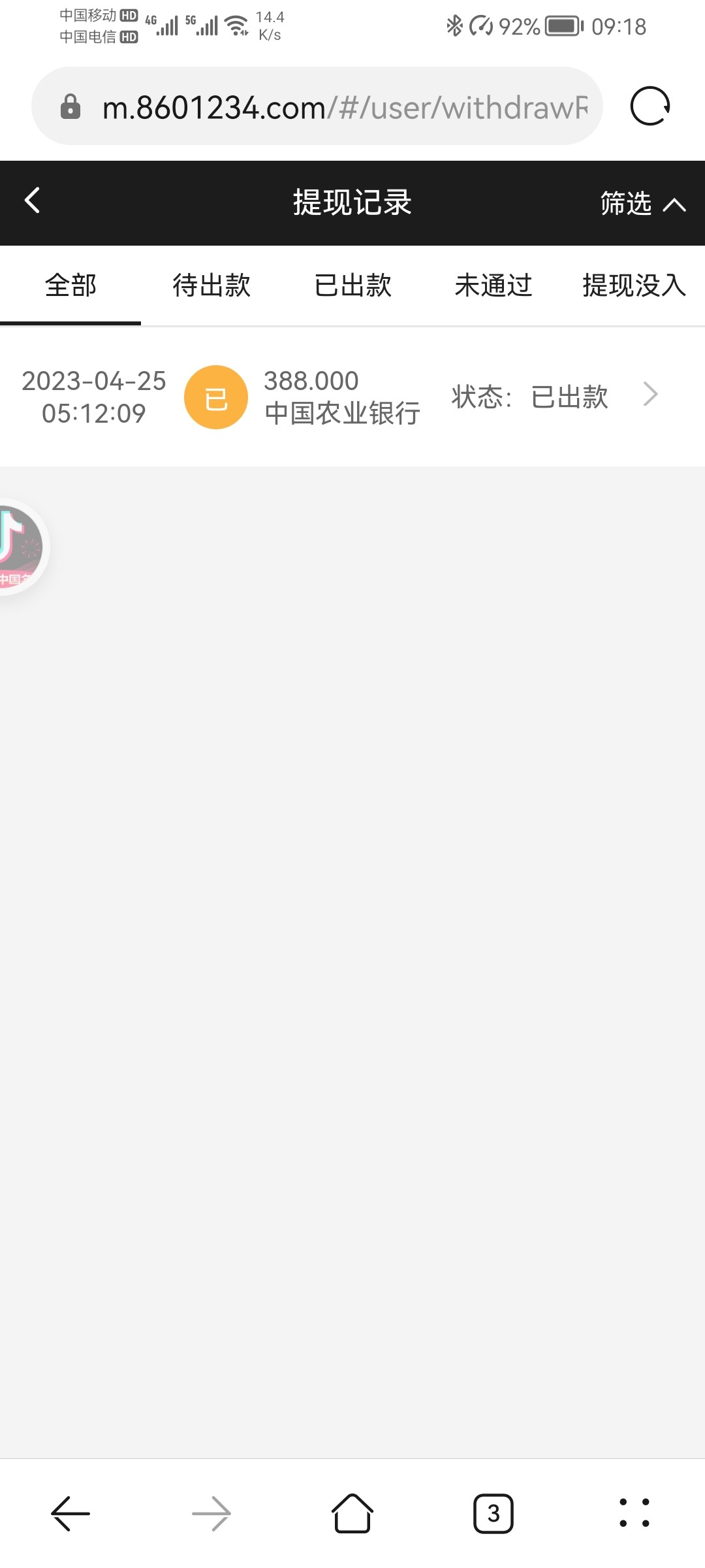 3个小时到账400