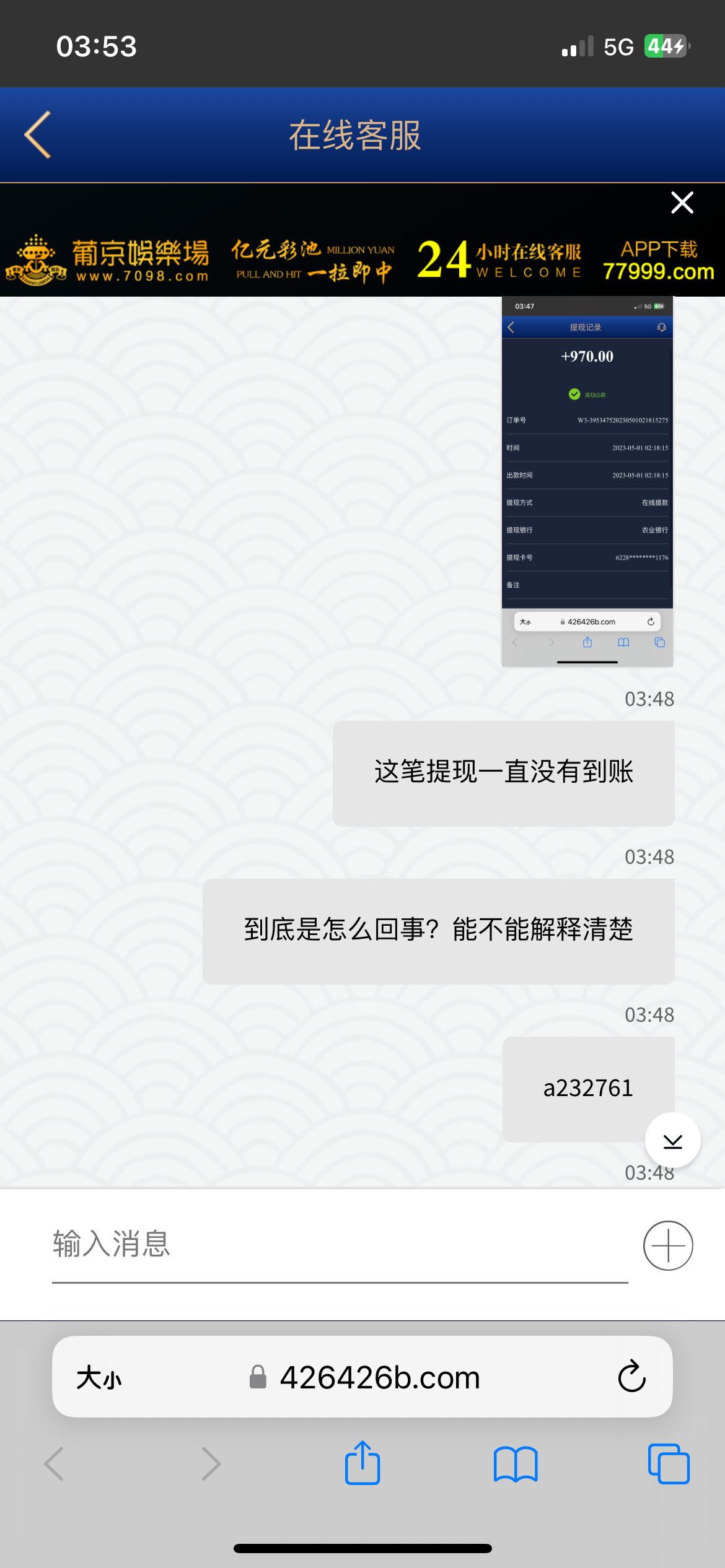 充值500提现970给我空汇,之后又提现一百说注单异常扣除,