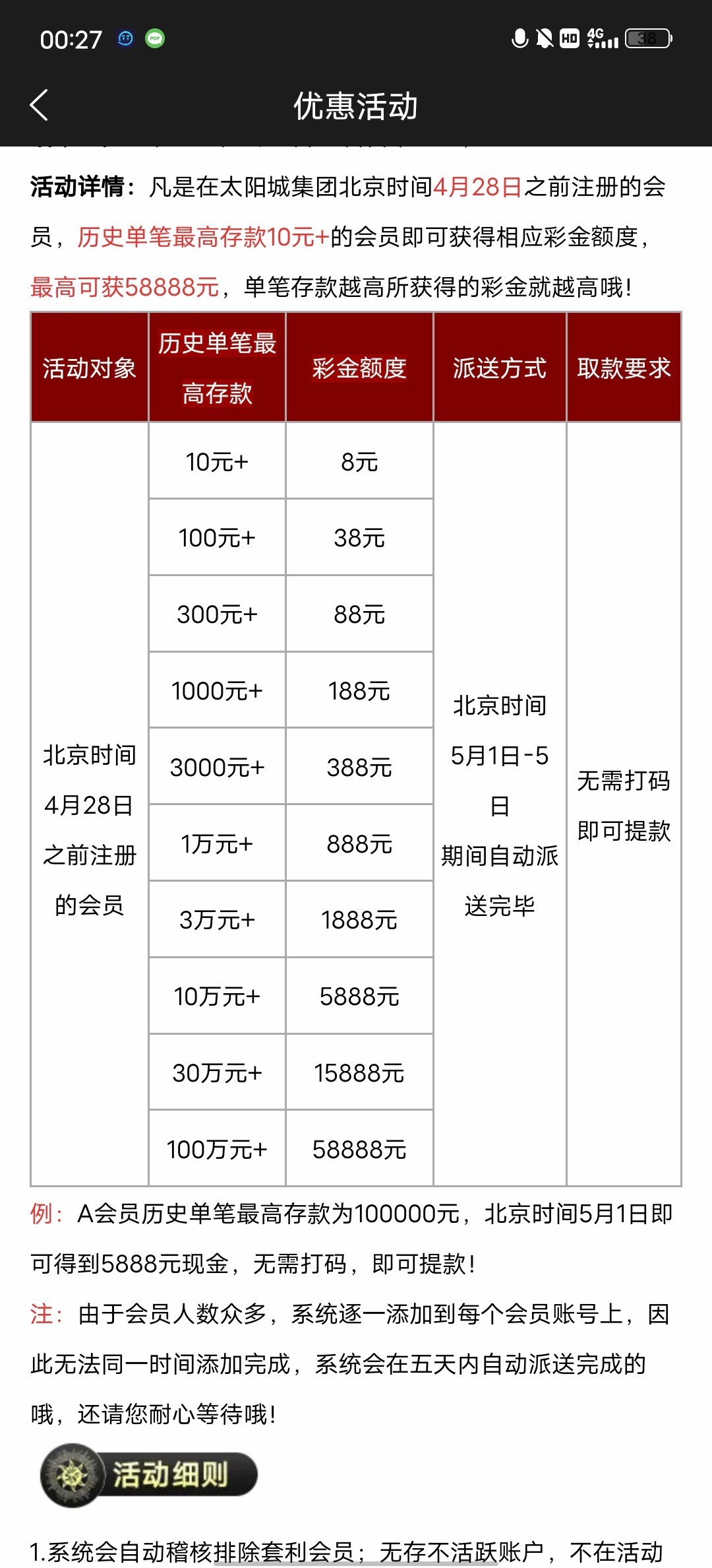 2018太阳城历史单笔充值回馈有人送了的吗?
