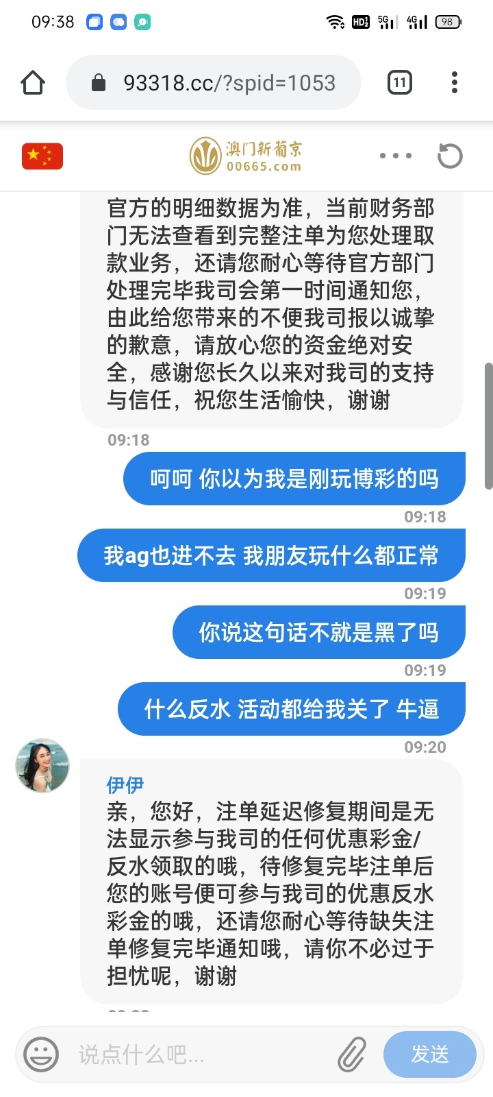 一直玩着的 也充过差不多有10w了     前天140反水优惠上2w黑了  找理由了