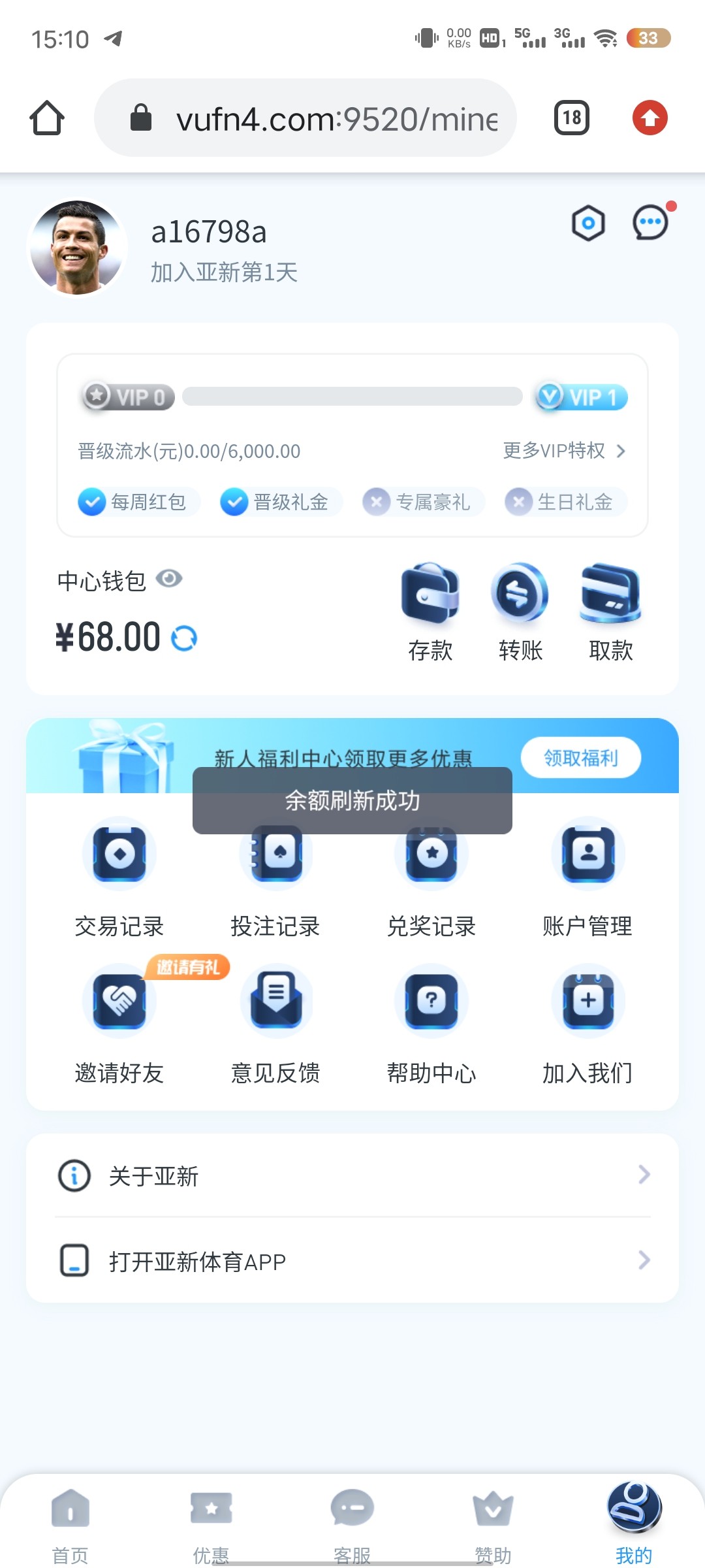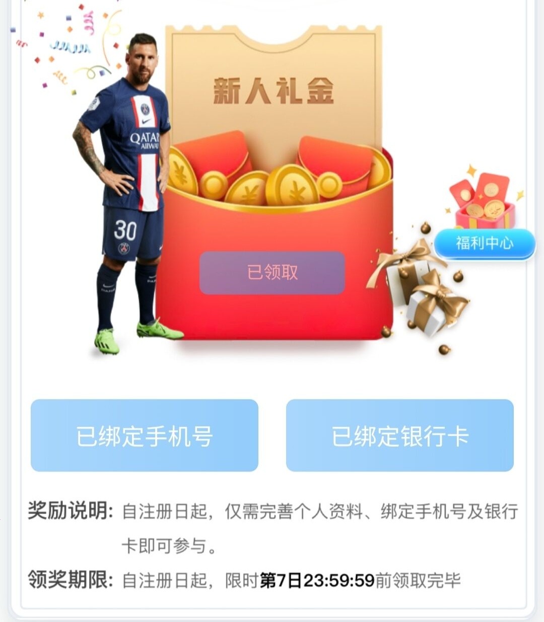 活动:新用户注册绑卡完善个人资料优惠大厅自助领取10,限制问客服